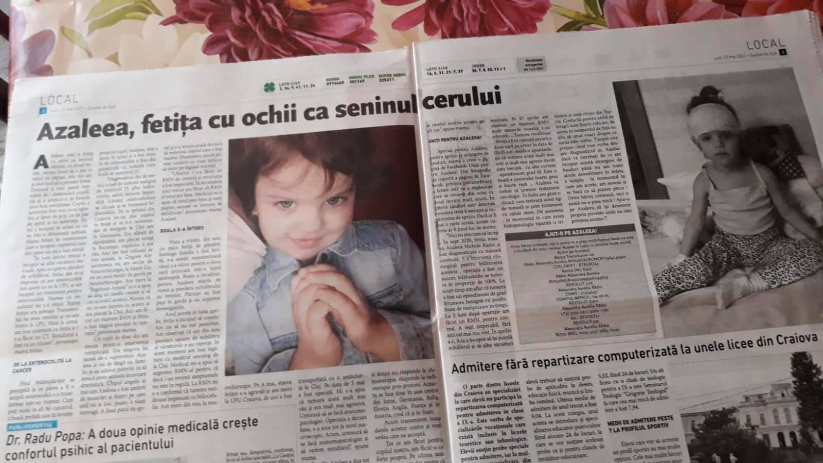 #prayforAzaleea #helpAzaleea #stopcancer Banca Transilvania #RON Rădoi Alexandra Aurelia RO63BTRLRONCRT0584149401 COD SWIFT : BTRLRO22 Banca ING #EURO
